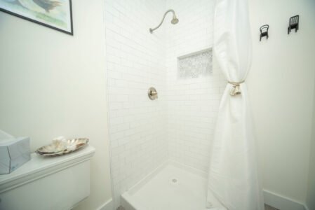 The private en suite bathroom includes a bright, tiled walk-in shower and modern fixtures that feel fresh and inviting. You’ll also find a cozy seating area that’s ideal for sipping your morning coffee or settling in for a movie night on the in-room smart TV.